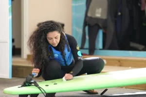 The 15-week course, running over three-and-a-half months, integrates trauma-focused therapy with surfing. Each session is guided by a professional team of psychologists, social workers, and expert surf instructors.