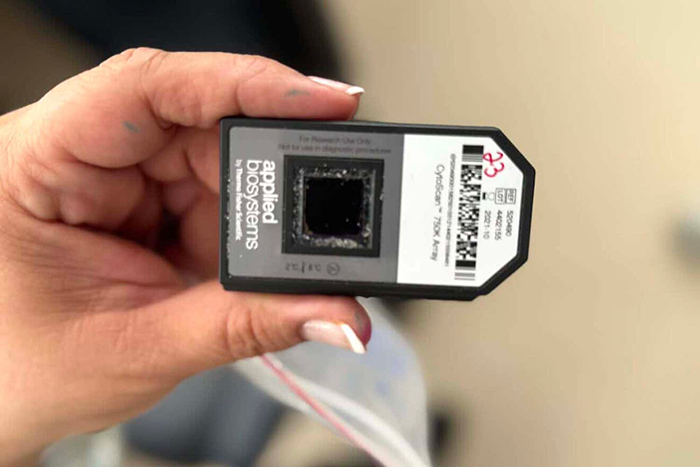 The genetic chip test in Prof. Idit Maya’s lab at Rabin Medical Center, Aug. 6, 2025. Photo courtesy of Howard Blas