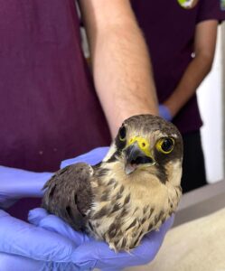 Injured Eurasian Hobby (Falco subbuteo) receiving care at KKL-JNF’s Hula Valley Wildlife Acclimatization Center. Photo courtesy of Nevo Ring, of the Center.