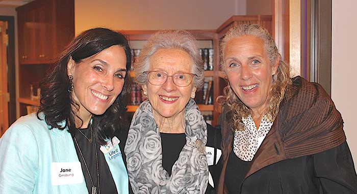 Jane Ginsburg, JFS president and CEO, Ruth Facher Mendel, survivor, Ruth’s daughter, Lisa A. Finkle, JFS board member.